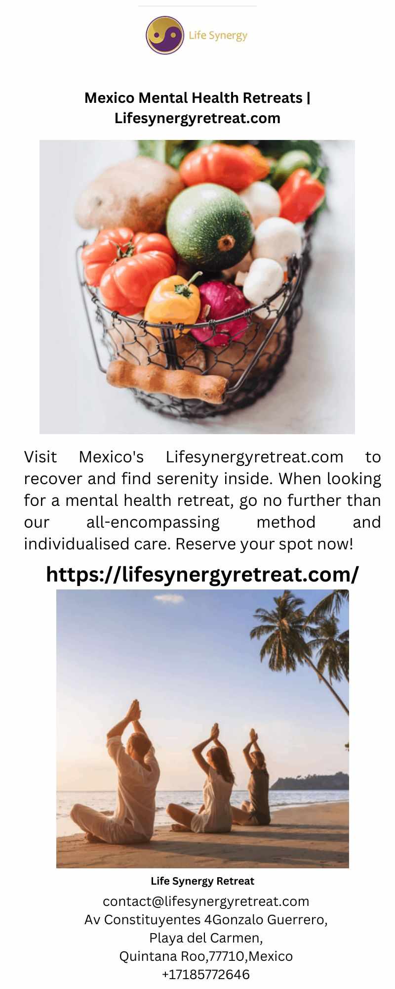 Visit Mexico's Lifesynergyretreat.com to recover and find serenity inside. When looking for a mental health retreat, go no further than our all-encompassing method and individualised care. Reserve your spot now!